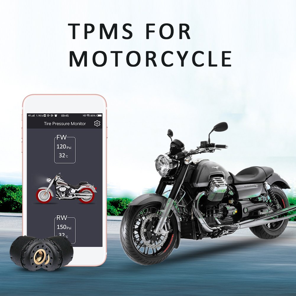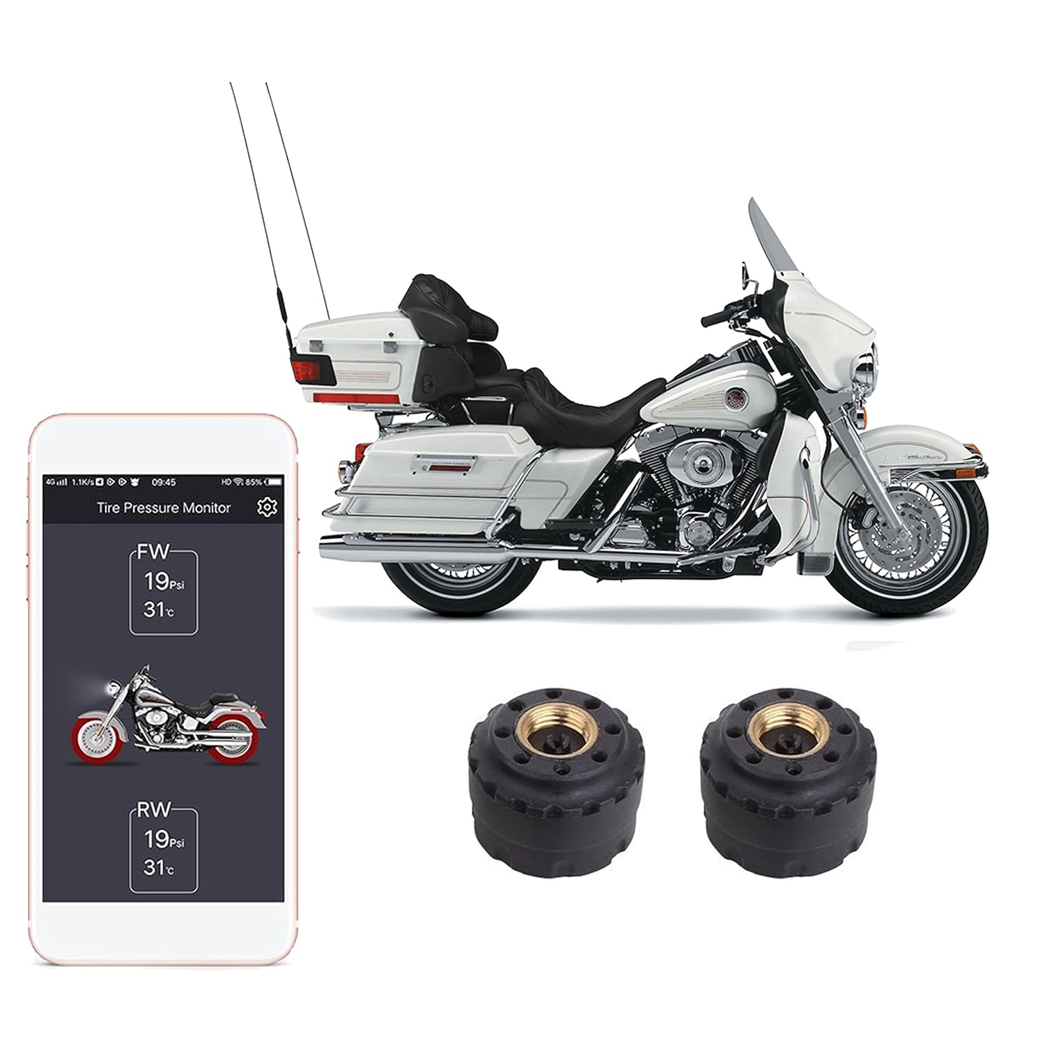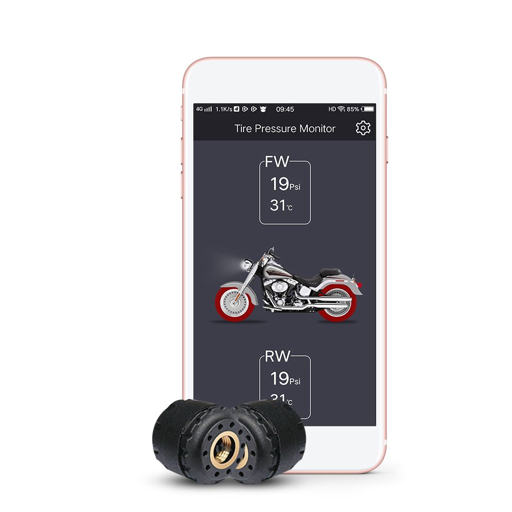 2. Motorcycle Bluetooth Tire Pressure Monitoring System TPMS Mobile Phone APP Detection External Sensor Bluetooth 4.0 TPMS with 2 Tire Sensors for Motorcycles
